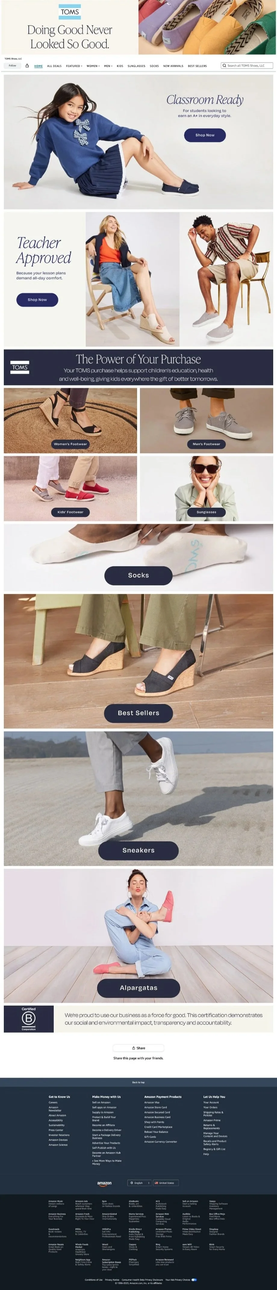 I co-designed a full Amazon Storefront refresh for TOMS, with a focus on UX, clarity, and scalability.
